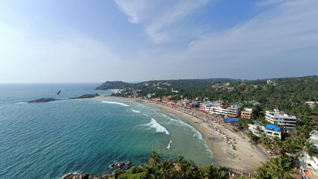 Kovalam is a charming beach town known for its pristine beaches, Ayurvedic resorts, and water sports. It’s one of the most popular coastal destinations in Kerala.